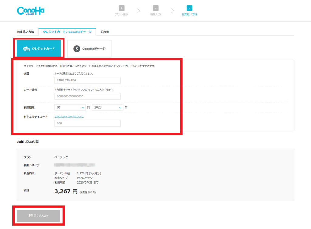 お申込内容を確認したら『お申込み』をクリック!